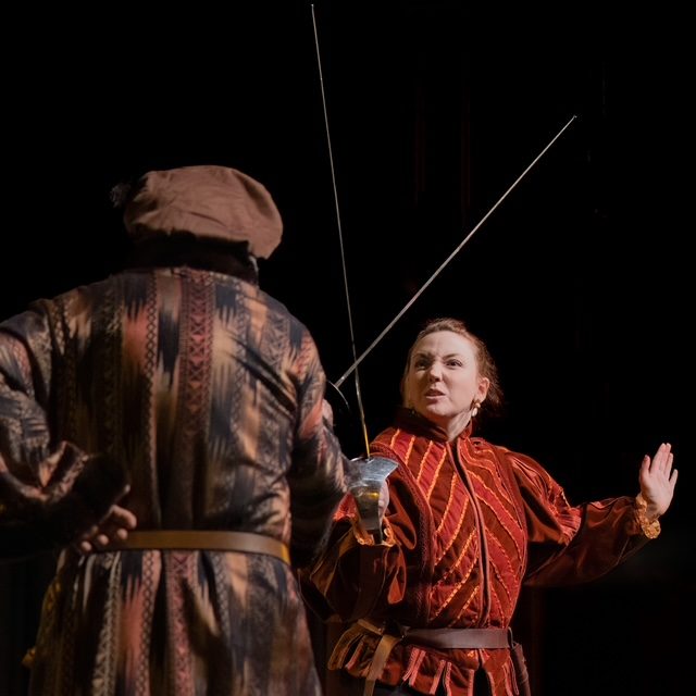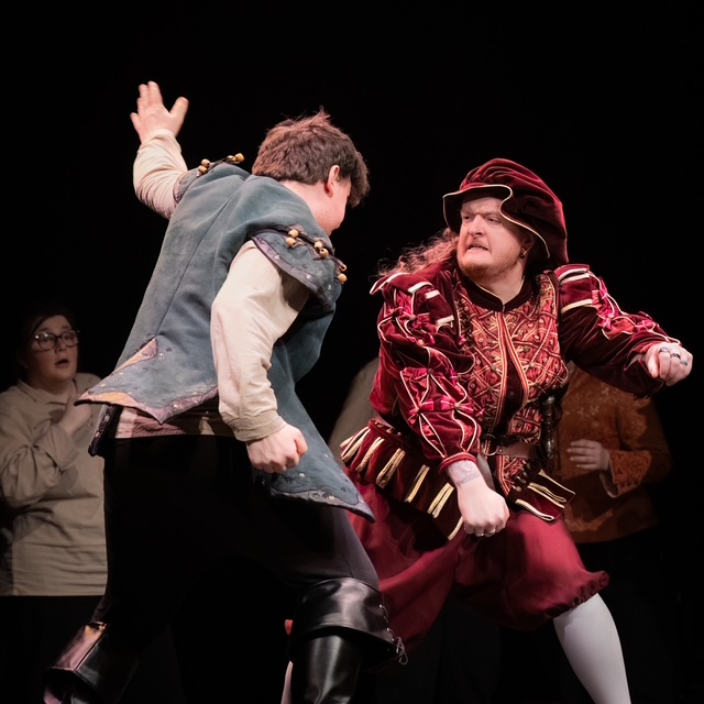 Barry Prescott took on the dual roles of Richard Burbage and the Boatman, providing versatility and a commanding presence. As Burbage, he embodied the confident actor-manager typical of the era, while his secondary role added a lighter touch to the production. Similarly, Matt Kasprzak’s multiple appearances as Frees, a henchman, and a town guard helped maintain the fast-paced nature of the play and demonstrated strong adaptability.