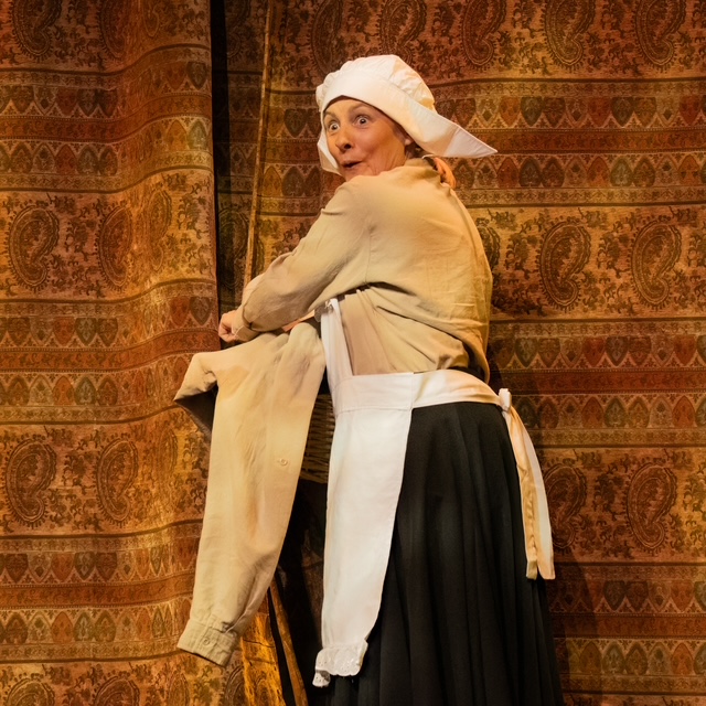 A strong supporting cast helped bring the bustling world of Elizabethan theatre to life. Marie Williams as Henslowe delivered an energetic performance as the anxious theatre owner, capturing the character’s constant concern for finances and productions with excellent comic timing. Trevor Butlin as Hugh Fennyman, the intimidating moneylender, balanced menace with humour.
