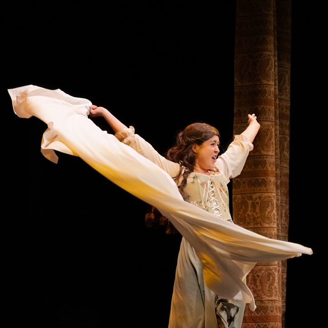 Opposite him, Gemma Dykes as Viola De Lesseps brought warmth and determination to the role. Viola is a character who defies the strict conventions of Elizabethan society in pursuit of her love for theatre, and Dykes conveyed this courage effectively. Her chemistry with Wood helped anchor the romantic heart of the play, especially in the moments when Viola disguises herself to act on stage.