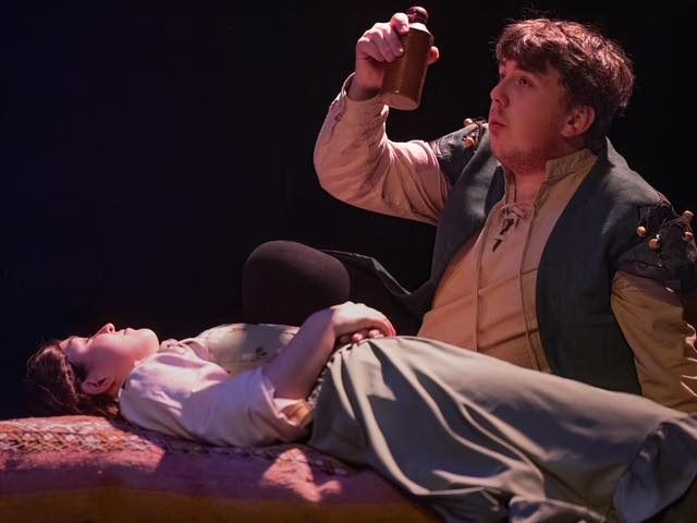 At the centre of the production was Josh Wood as Will Shakespeare, who delivered a convincing portrayal of the struggling playwright suffering from writer’s block. Wood captured both Shakespeare’s wit and vulnerability, moving naturally between comic frustration and poetic passion. His performance developed well throughout the play, particularly as Shakespeare finds inspiration through love, giving the character a believable emotional arc.